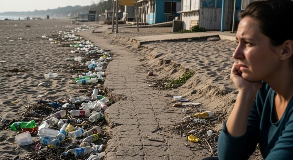 When many tourists visit a place it can hurt the environment. The beaches and the streets get dirty. The old buildings are not taken care of. It is not nice to look at. It is not a good experience.