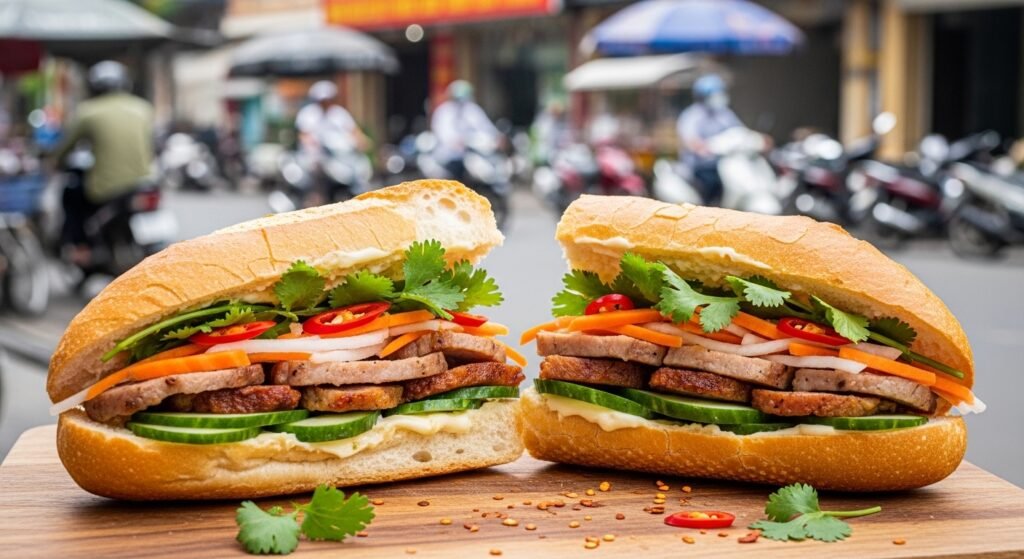 The sandwich is stuffed with a mix of scrumptious meat that resembles grilled pork or Vietnamese link. Pickled carrots, daikon, cucumber, cilantro, and chili are exemplifications of fresh constituents that give colour and crunch. Bánh mì, which is vended from road carts each around Vietnam, is adored for its unthinkable harmony of flavours and textures.