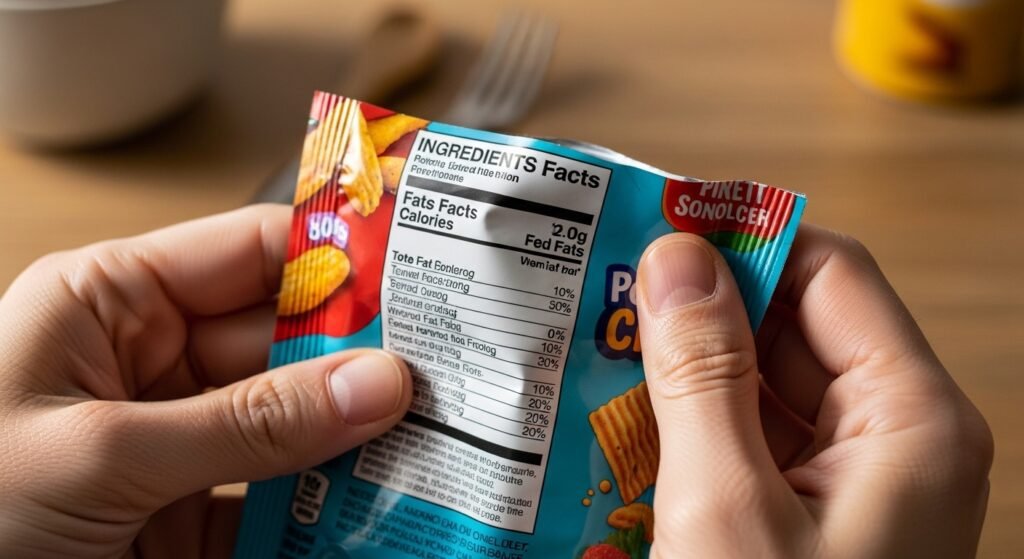 Look at the label. What you see is what ends up inside you. Sometimes, a fast look misses the bad stuff sitting right there. Little by little, checking helps – without noise, it changes your habits.