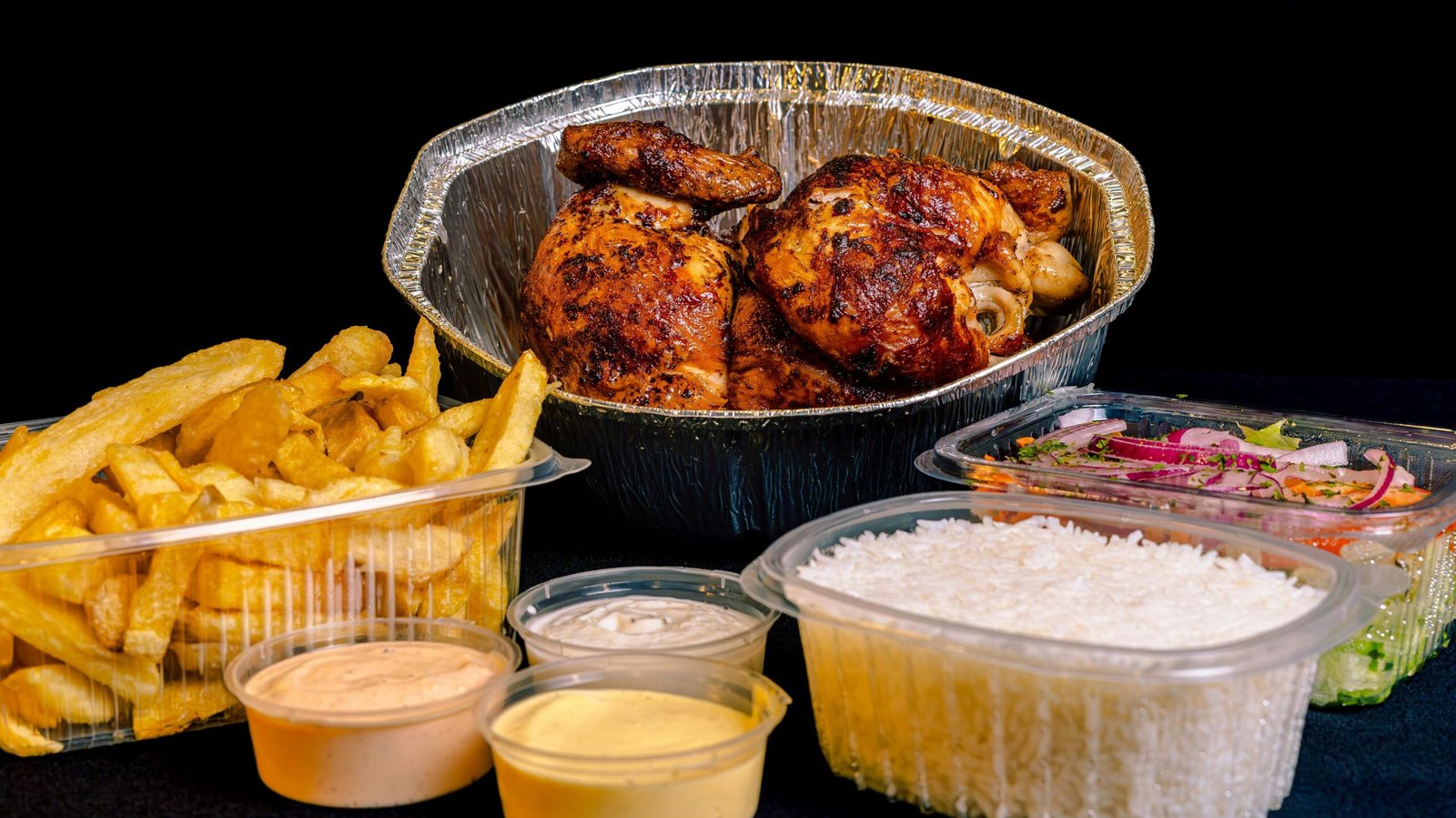Photo by Nano Erdozain: https://www.pexels.com/photo/a-tray-of-food-with-chicken-rice-and-fries-27643013/